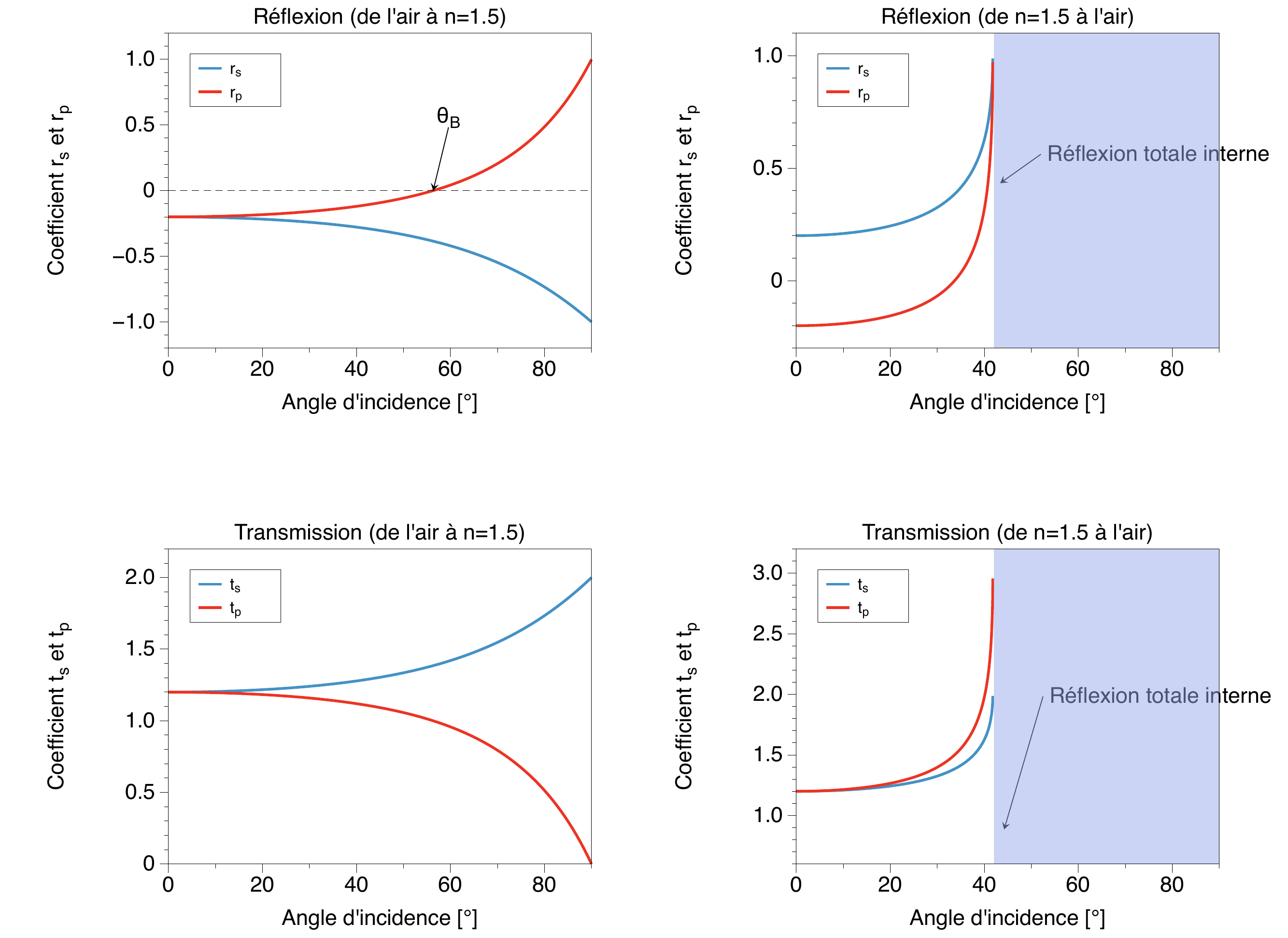 Savoir utiliser les coefficients de Fresnel pour les deux polarisations ;