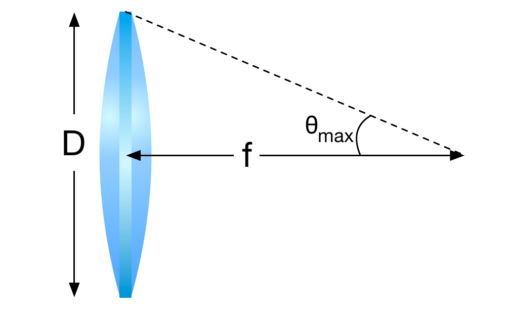 pas" toute la lentille est que le \(f\)-number effectif est augmenté de \(f^{\rm{eff}}_\# = \frac{D}{d} \times