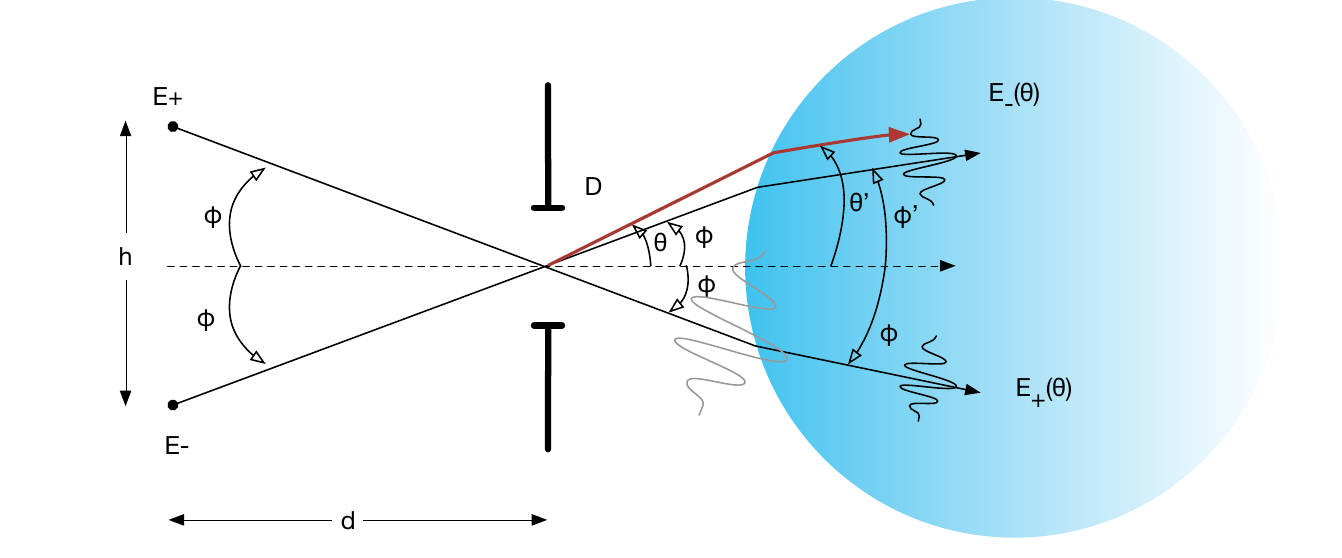 maximum du patron de diffraction de l’autre faisceau \(E_-(\theta)\) à \(\phi\). On veut donc: \[\begin{equation*}