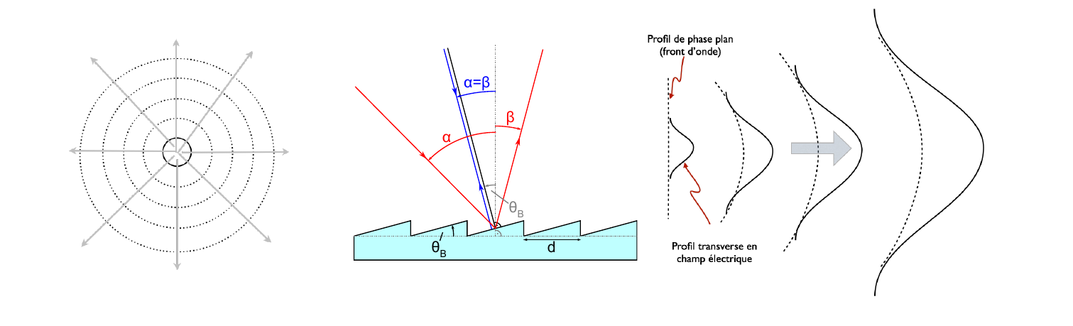 Nommer, identifier et connaître les propriétés spécifiques des trois types de réseaux d’amplitude, de phase et blasé ;